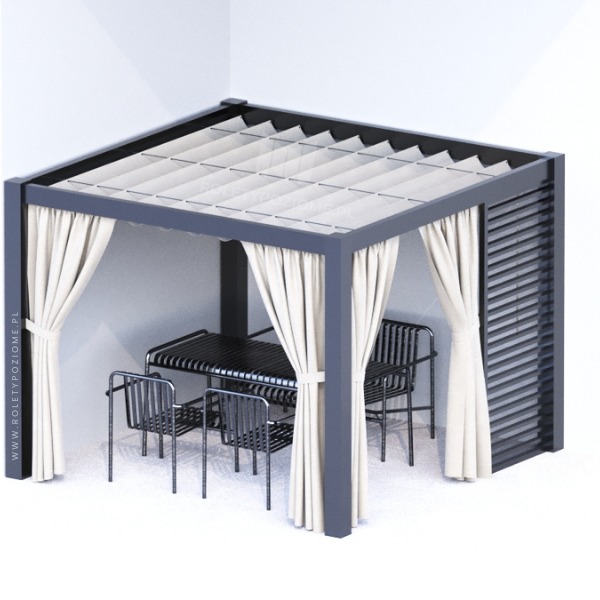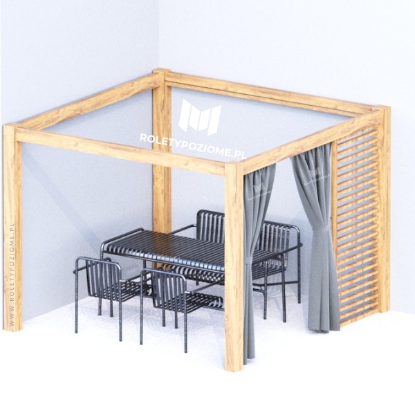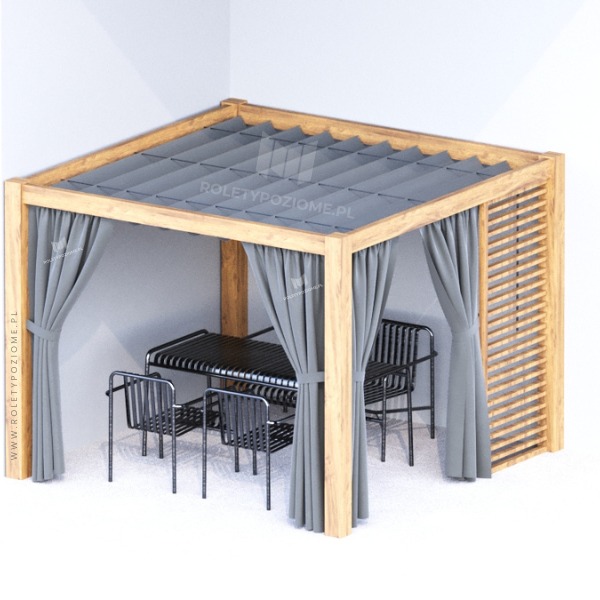 - Zasłony które można zamówić do kompletu chronią również przed wiatrem.